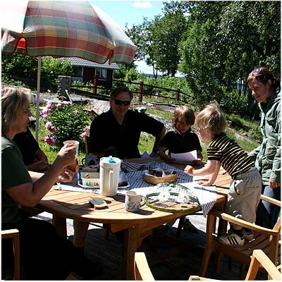 | Comment | Inja-Bodil ser dem och ropar "behöver ni en karta" - och barnen tror att det bjuds på kaka. Och kakor och saft räcker till alla, så badstranden får vänta en stund. |