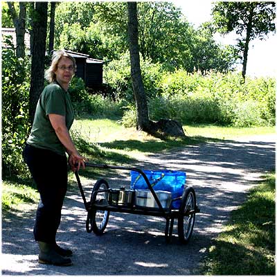 | Comment | Städarbetet är klart och Inja-Bodil drar kärran med varmkorvar, korvbröd och kastruller med hett vatten till väntkuren. Dags för utbetalningar och avslutande supé. |