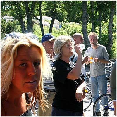 | Comment | Men när den första korven slunkit ned kommer snacket igång. Längst fram ?? Sjöblom, Åsa och Janne. |