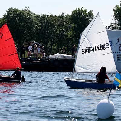 | Comment | Sen är det Calle Ahlqvist med rött segel och Camilo Pareres som kommer iväg. |