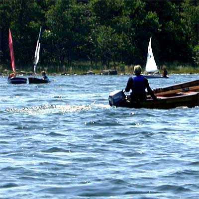 | Comment | Nu dröjer det lite tills de övriga börjar närma sig. Här är det Klas, Calle och Camilo som seglat lite nära land och måste slå sig ut för att kunna runda Rödlöga-båten. |