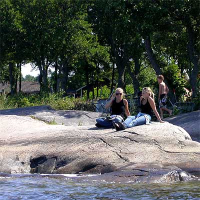 | Comment | Åskådarna finns överallt. Här sitter några på den sköna berghällen vid sidan av ångbåtsbryggan. |