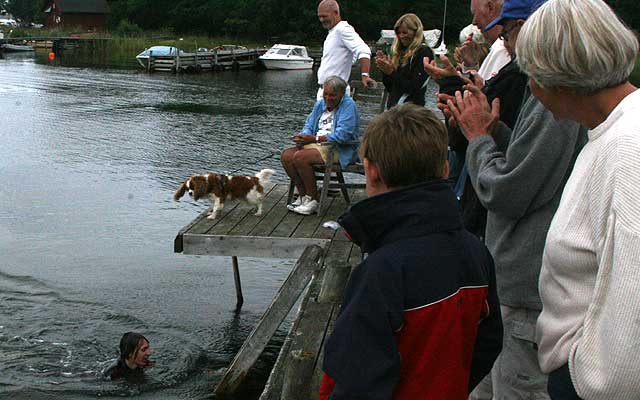 | Comment | Noah är i mål - och alla på bryggan klappar händer och gratulerar. |