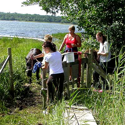 | Comment | Nattvilan för de båda hästarna på Skäret är slut, när grinden öppnas och de leds till Snickargården. |