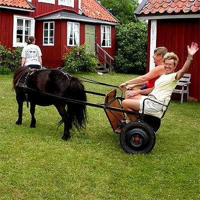 | Comment | På förarplats sitter Kersti medan Riitta glatt vinkar inför åkturen Norröra runt. |